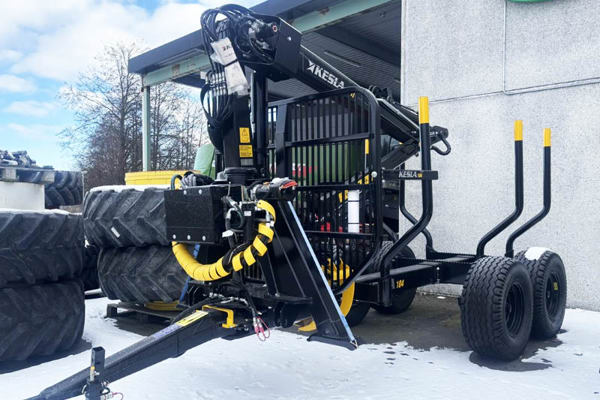 Lastkapacitet 10 ton, Däck 15.0/70x18", Verktygslåda, Arbetsbelysning vagn och kran, Walvoil SD-8 hydraulservo ventilpaket, Bromsad länk, Radiostyrd vinsch