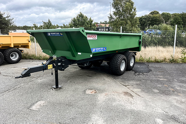 Hjul 500/50x17, flaktjocklek botten/sidor Hardox 450 6 mm, hydraulisk entreprenadlucka samt bak/sidohängd bakläm.