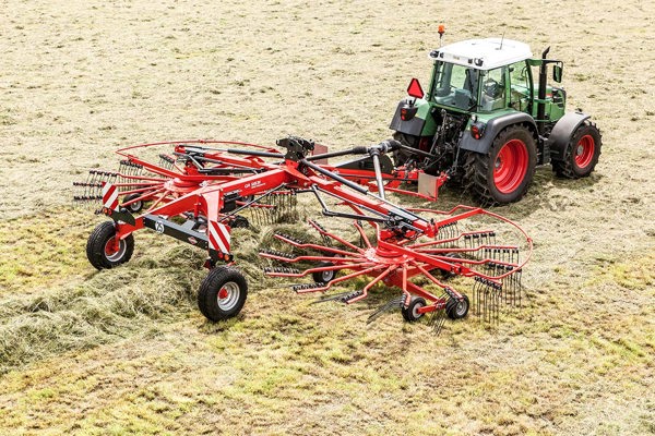 Lånat från de större 2- och 4-rotors strängläggarna från Kuhn har dessa maskiner också den slitstarka MASTER- DRIVE växellådan – en tvåstegs reduktionsväxellåda som har fler kuggar i ingrepp samtidigt och gör att driftssäkerheten är på topp även vid körning i höga skördar med tungt, blött gräs.