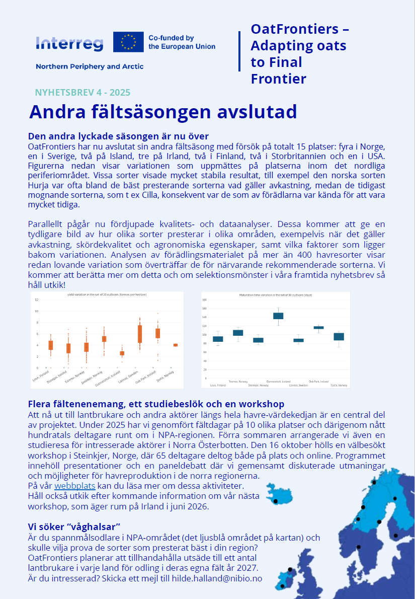 I detta nyhetsbrev får ni läsa lite om vad vi gjort under 2025 samt möta havreexperterna från Sverige.